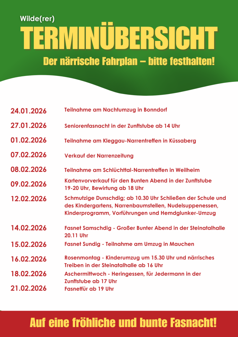 Hier kommen die närrischen Termine für das Jahr 2026!